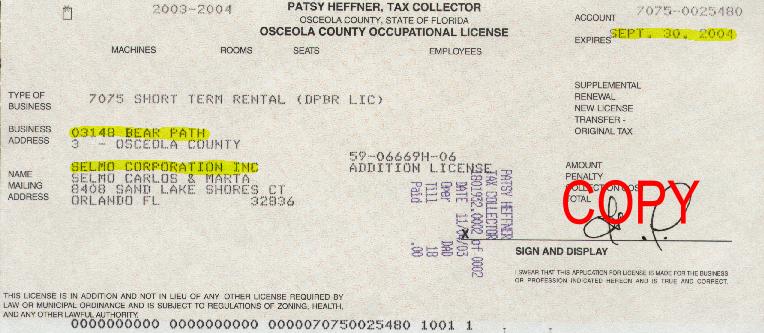 Division of Hotels & Restaurants, Occupational license and check names, addresses and dates.
